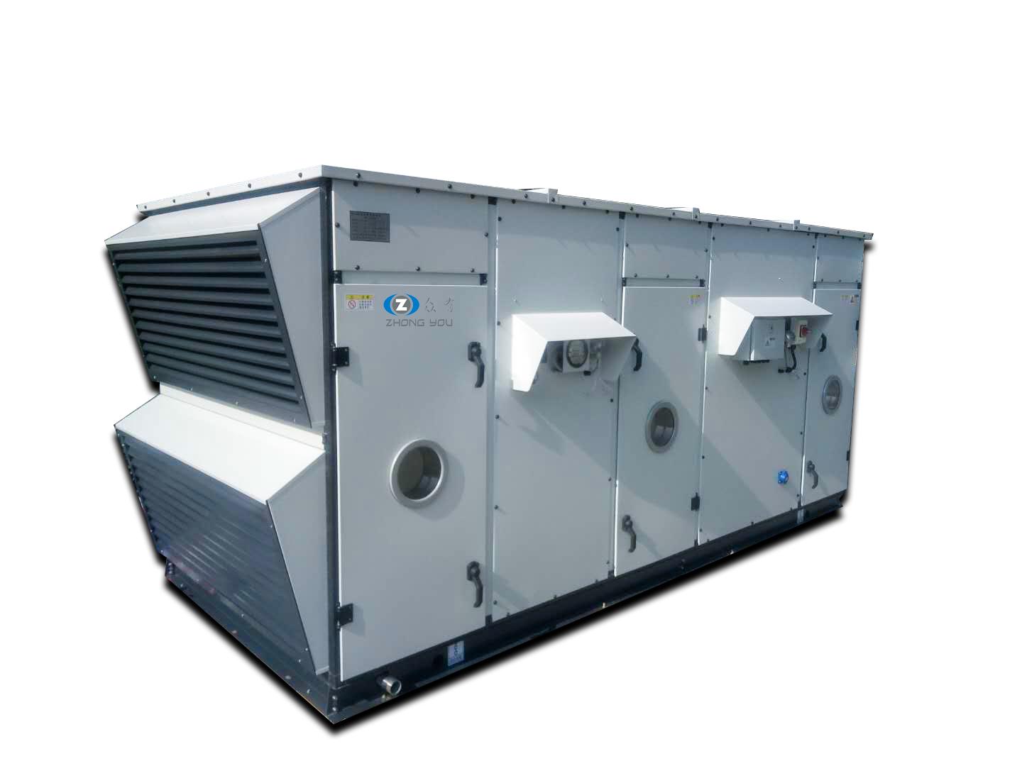 將室外的新鮮空氣經(jīng)處理后送入封閉區(qū)域、房間的機(jī)組,其蒸發(fā)器進(jìn)風(fēng)方式為全部新風(fēng)(或者新風(fēng)量占總送風(fēng)量50%以上的也可以參考本規(guī)范),特點(diǎn)是工況惡劣、工況變化大。此類(lèi)機(jī)組包括制冷、制熱、加濕、除濕、通風(fēng)、潔凈等功能。其目的是為了配合回風(fēng)機(jī)組,對(duì)房間工況進(jìn)行調(diào)節(jié),一般精度要求不高。