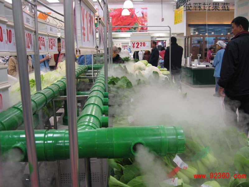 案例:超市的蔬菜柜臺(tái),在霧氣中浮現(xiàn)的蔬菜水果,看上去就像清晨剛從果園菜地里摘下來一樣新鮮。據(jù)介紹,這是超市為延長蔬菜水果的“壽命”而啟用的新式“武器”,其噴出的霧氣一來可以保持低溫,二來能均勻保持水分,三來整個(gè)區(qū)域降溫造景。超市的蔬菜水果賣場中,一些青菜水果常因水分蒸發(fā)變質(zhì),導(dǎo)致“賣相”不好。新引進(jìn)的噴霧系統(tǒng)令不少顧客好奇不已,經(jīng)霧化的水汽可使空氣保持一定的濕度和低溫,使青菜水果常置于鮮嫩保質(zhì)之中。